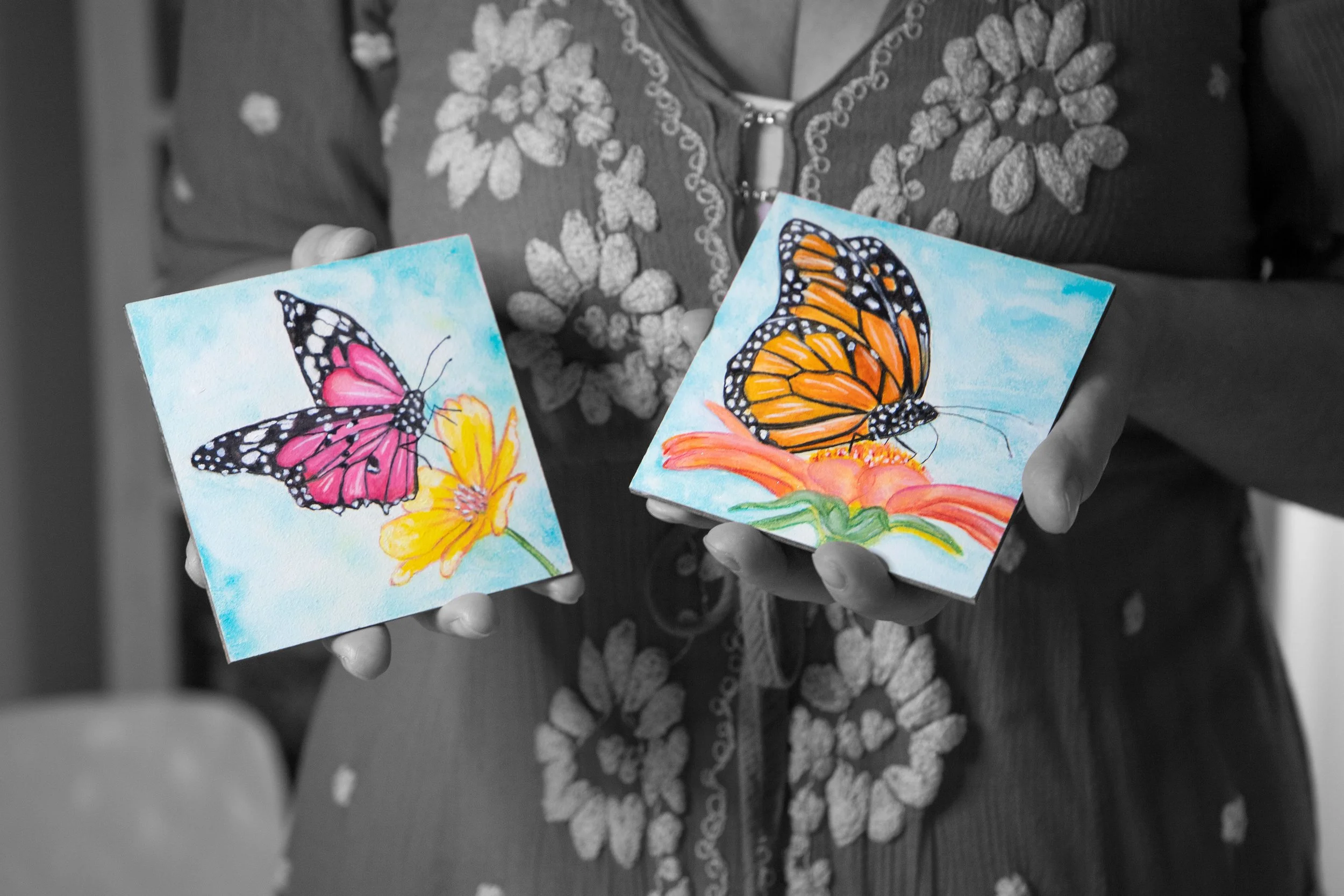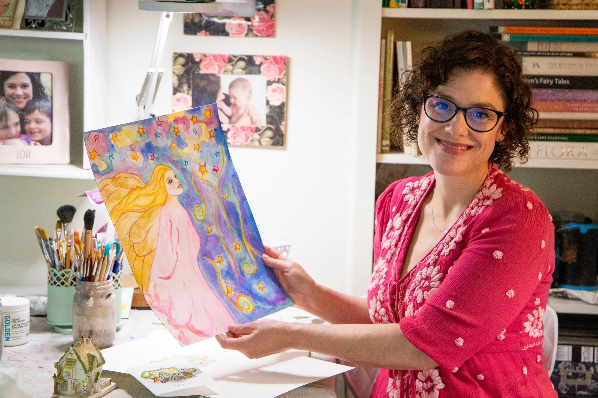 An artist hoping to bring sparks of enchantment to your day though whimsical mixed media and watercolor art.